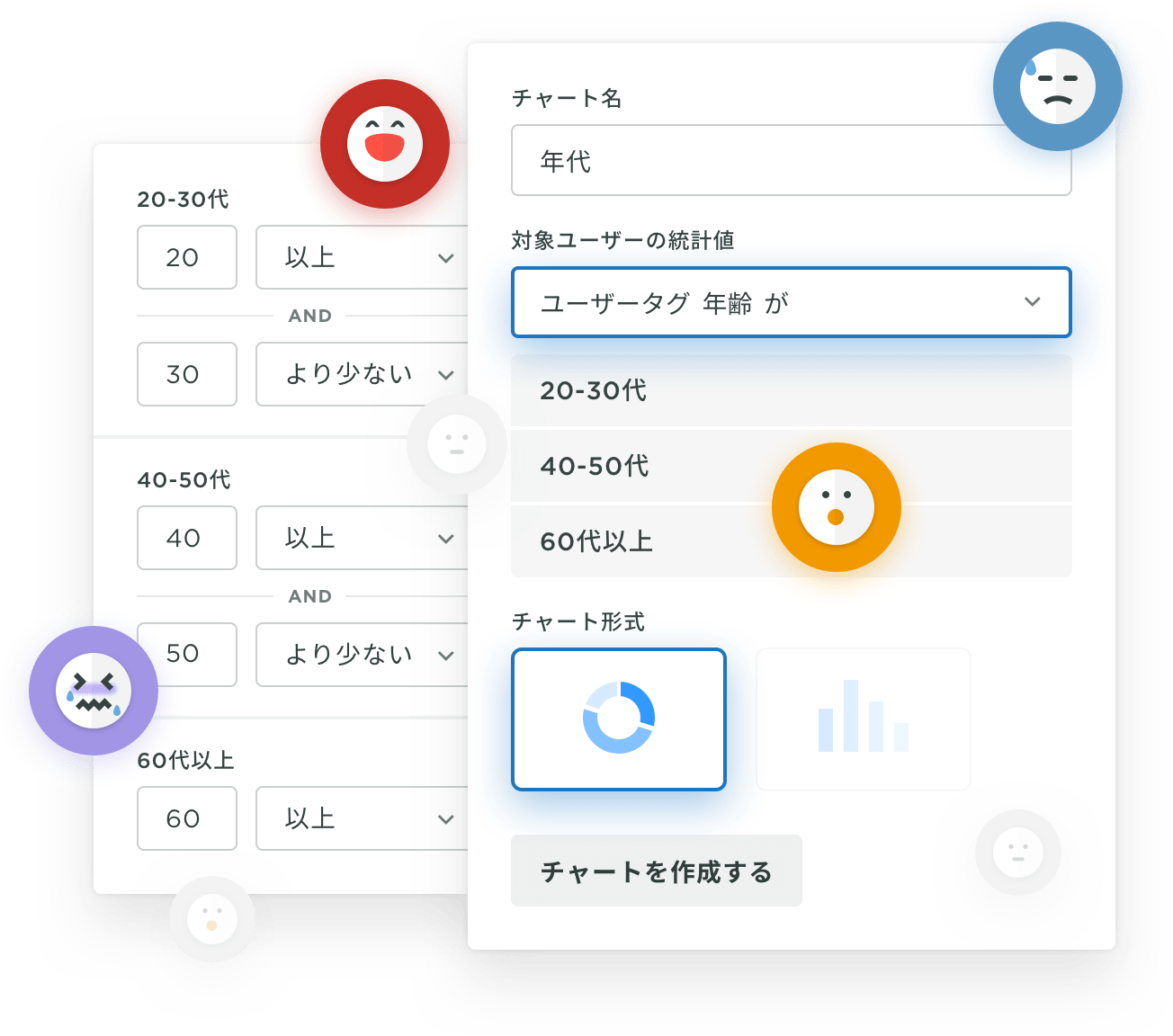 クエリ作成なしに、自由度高くチャートを作成・比較しながらユーザー理解を進めることができます。
