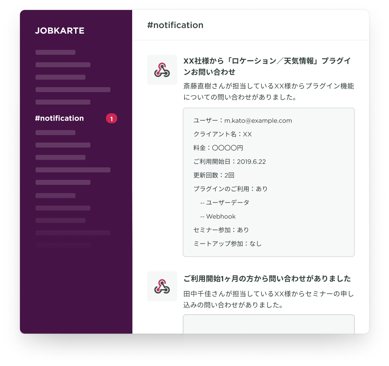 特定のセグメントに属するユーザーや特定の行動をしたユーザーをSlackへ通知することが可能です。ユーザーの状態・変化をいち早く捉え、適切な施策を即座に提供できる環境づくりを行いましょう。インサイトは、シームレスに他部署と共有でき、サービス改善や顧客体験価値の向上に役立てることができます。