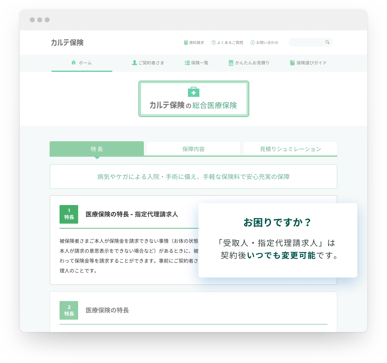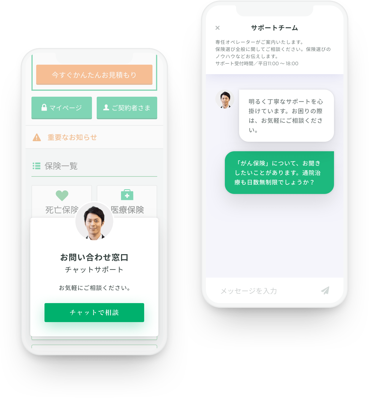 最適なタイミングでご案内/オファーを出すことで、成約率を高めます。申し込み手続きの途中で、「いつでも変更できます」と案内したり、その人にあった特約をセットするオファーを出すなど、対面販売をしているかのように、タイミングを見極めて一人ひとりにあった提案を行うことができます。