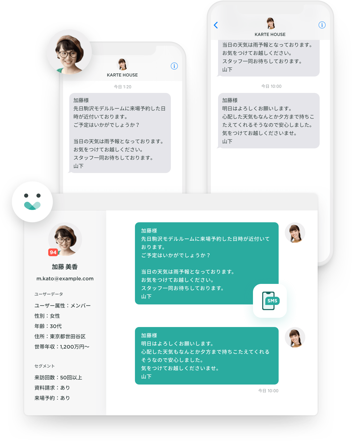 例えば、来場率向上のため、来場予約完了時と来場前日のご連絡をSMSで送信しましょう。