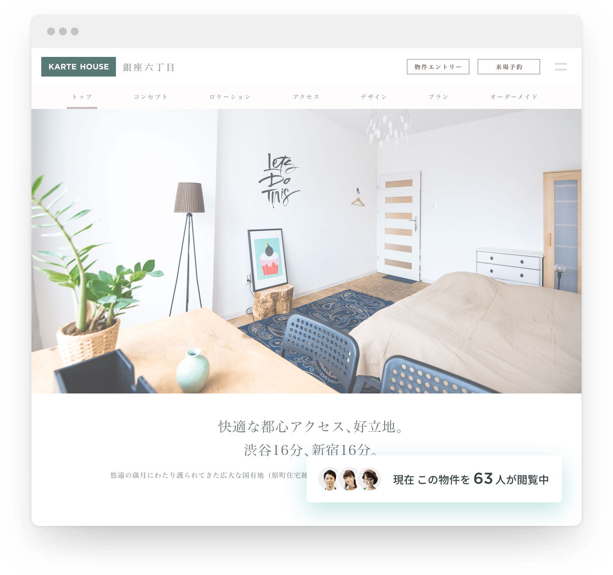 同時アクセスが多く見込まれるページで「この物件を◯人が閲覧中」と訴求することにより、よりリアル感ある訴求が演出できます。